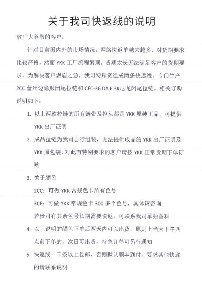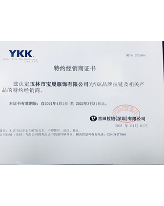 寶晨與國(guó)際知名品牌YKK簽約成為長(zhǎng)期合作伙伴,致力于經(jīng)營(yíng)YKK出品的各種拉鏈;