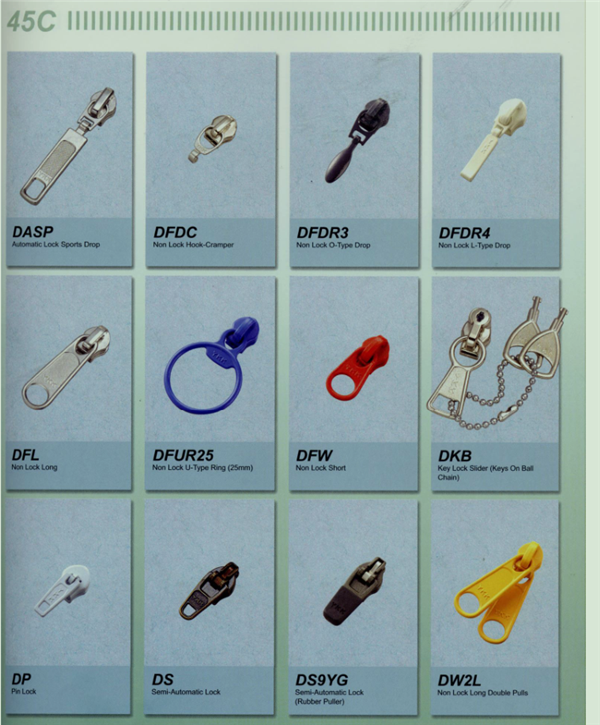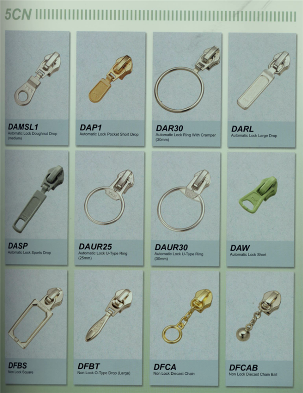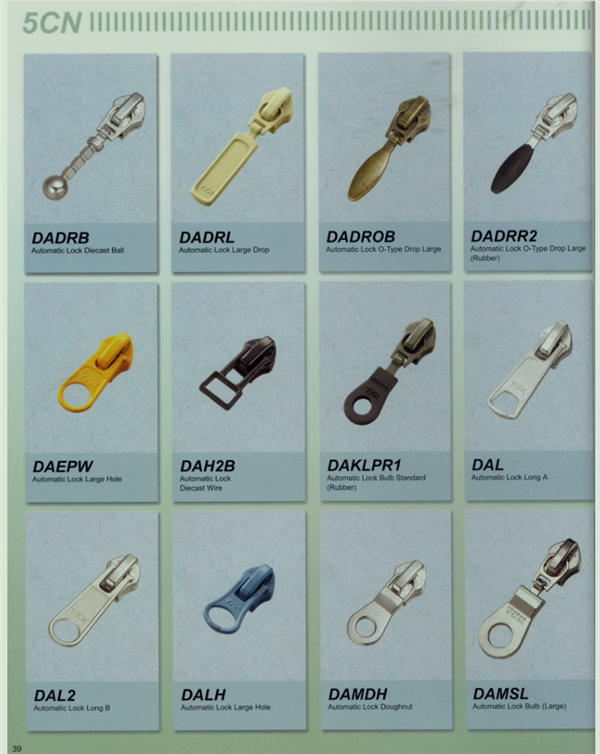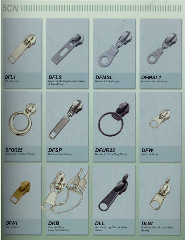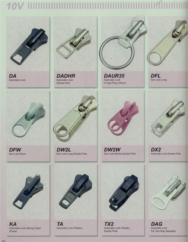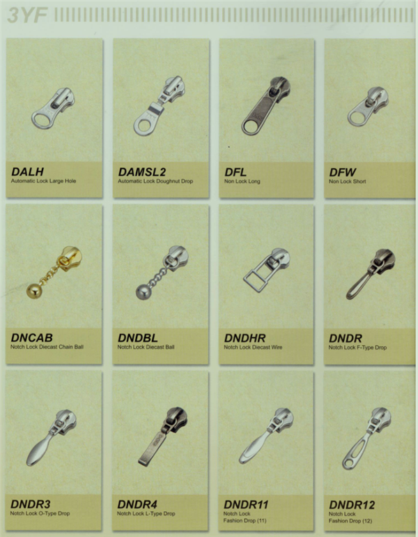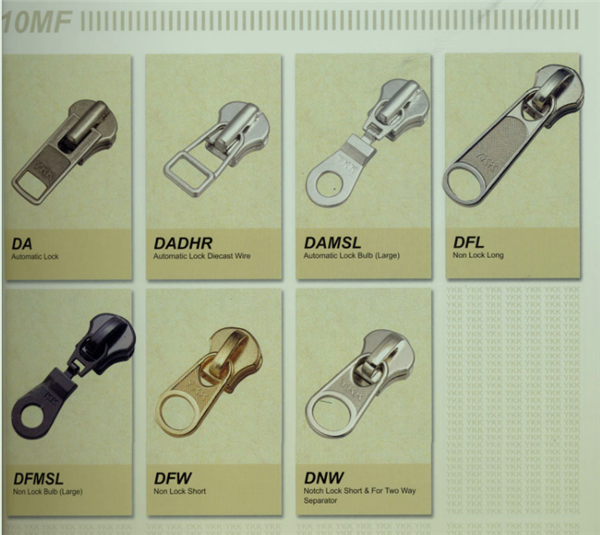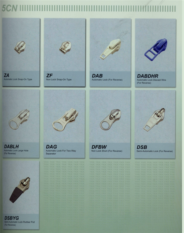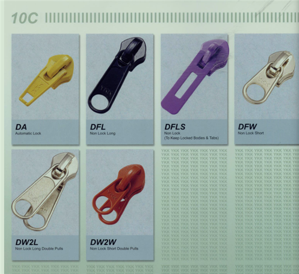 YKK樹(shù)脂牙拉鏈及拉頭、YKK金屬牙拉鏈及拉頭、YKK Y牙牛仔系列拉鏈等。
