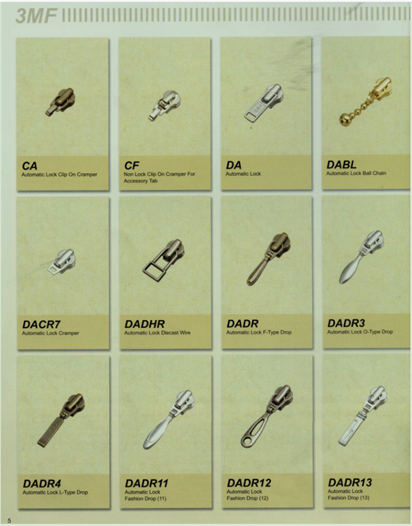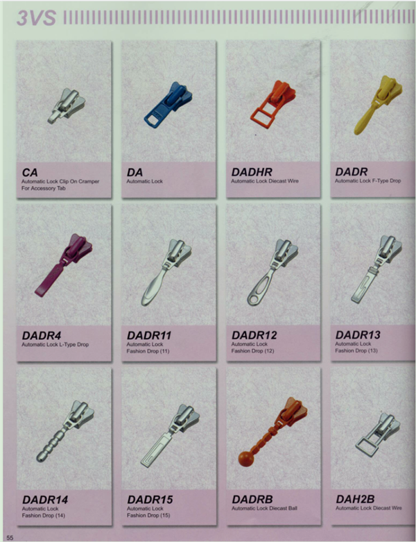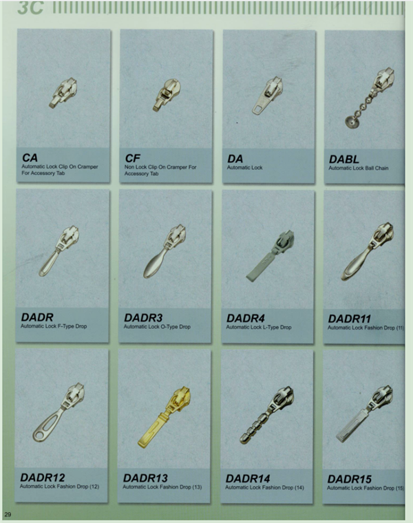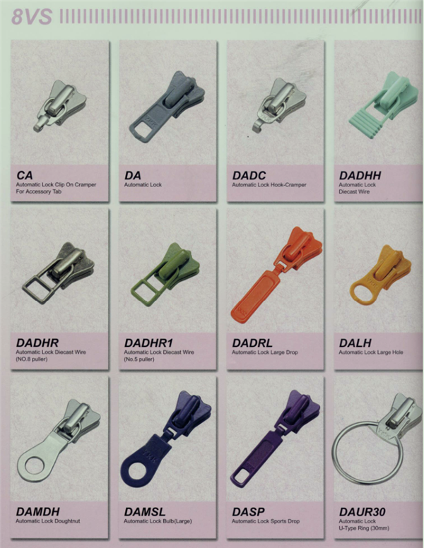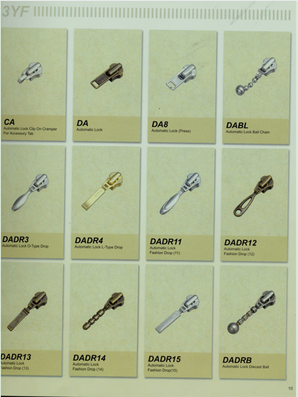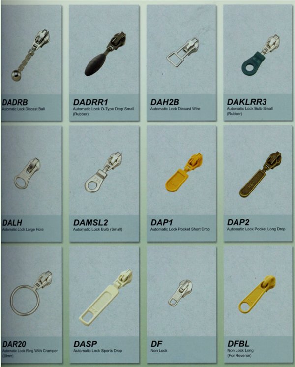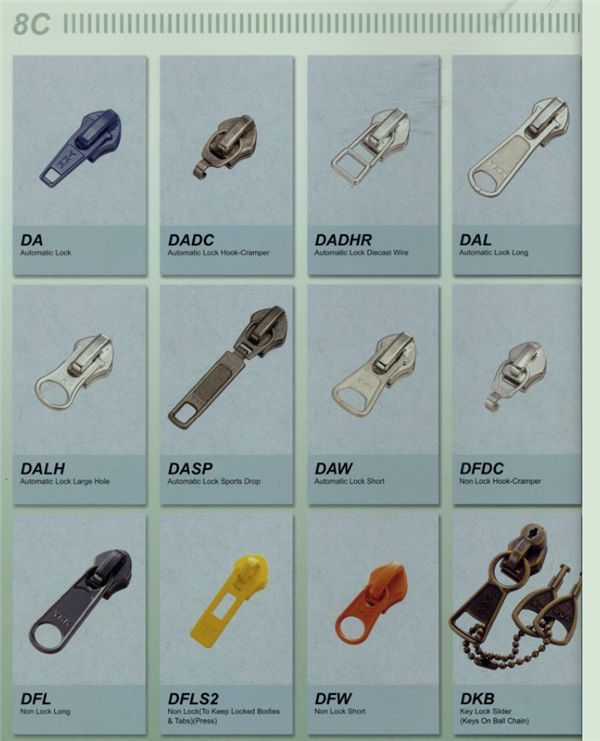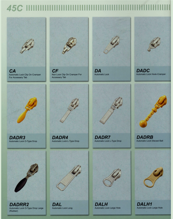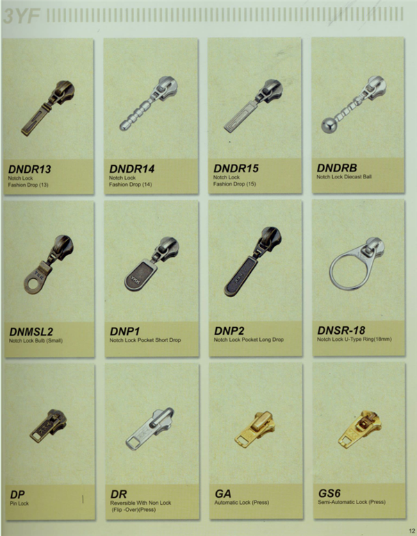 YKK樹(shù)脂牙拉鏈及拉頭、YKK金屬牙拉鏈及拉頭、YKK Y牙牛仔系列拉鏈等。